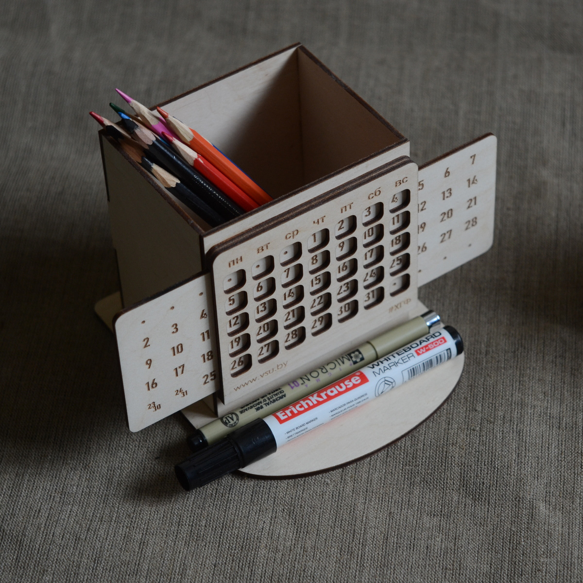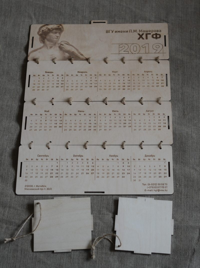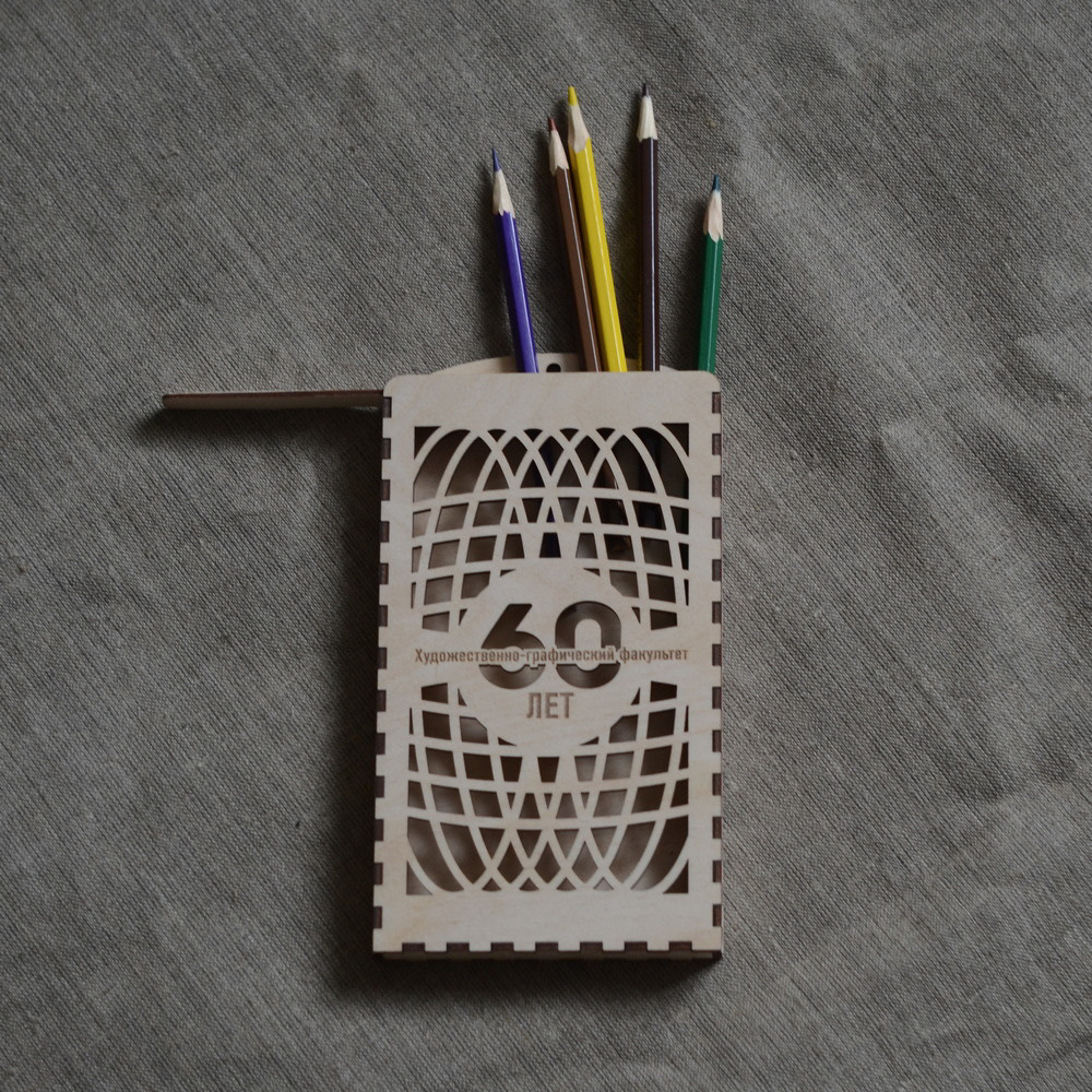 In 2019, the art and graphics faculty of Vitebsk State University celebrated its 60th anniversary. For the solemn event, I designed and made themed souvenir products